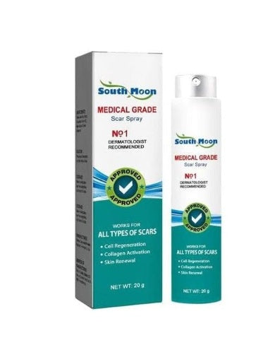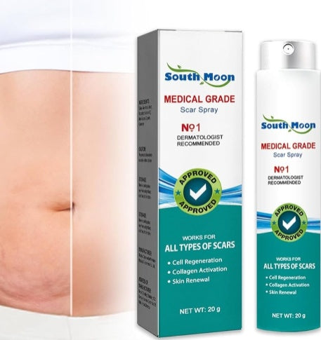 South Moon Medical Grade Scar Spray – A dermatologist-recommended formula designed to visibly reduce scars by promoting skin regeneration and collagen activation.